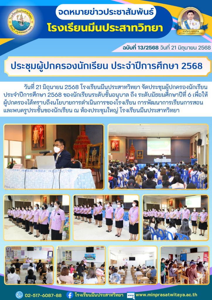 วันที่ 21 มิถุนายน 2568 โรงเรียนมีนประสาทวิทยา จัดประชุมผู้ปกครองนักเรียน ประจำปีการศึกษา 2568 ของนักเรียนระดับชั้นอนุบาล ถึง ระดับมัธยมศึกษาปีที่ 6 เพื่อให้ผู้ปกครองได้ทราบถึงนโยบายการดำเนินการของโรงเรียน การพัฒนาการเรียนการสอน และพบครูประชั้นของนักเรียน ณ ห้องประชุมใหญ่ โรงเรียนมีนประสาทวิทยา