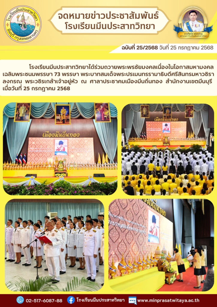 โรงเรียนมีนประสาทวิทยาได้ร่วมถวายพระพรชัยมงคลเนื่องในโอกาสมหามงคลเฉลิมพระชนมพรรษา 73 พรรษา พระบาทสมเด็จพระปรเมนทรรามาธิบดีศรีสินทรมหาวชิราลงกรณ พระวชิรเกล้าเจ้าอยู่หัว ณ ศาลาประชาคมเมืองมีนถิ่นทอง สำนักงานเขตมีนบุรี เมื่อวันที่ 25 กรกฎาคม 2568