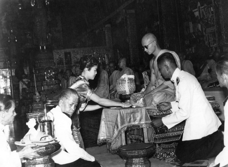 พุทธศักราช ๒๔๙๑ ขณะที่หม่อมเจ้านักขัตรมงคลและครอบครัวอยู่ในปารีส ได้รับเสด็จสมเด็จพระเจ้าอยู่หัวภูมิพลอดุลยเดช ซึ่งโปรดเสด็จพระราชดำเนินไปทอดพระเนตรโรงงานทำรถยนต์ในกรุงปารีสอยู่เสมอ จนเป็นที่คุ้นเคยและต้องพระราชอัธยาศัย ฉะนั้นเมื่อสมเด็จพระเจ้าอยู่หัวทรงประสบอุปัทวเหตุทางรถยนต์ในประเทศสวิตเซอร์แลนด์ ต้องประทับรักษาพระองค์ในสถานพยาบาล จึงทรงพระกรุณาโปรดเกล้าโปรดกระหม่อมให้หม่อมหลวงบัวพาบุตรี ทั้งสองคือหม่อมราชวงศ์สิริกิติ์และหม่อมราชวงศ์บุษบาเข้าเฝ้าทูลละอองพระบาทเยี่ยมพระอาการเป็นประจำ จนพระอาการประชวรทุเลาลงและเสด็จกลับพระตำหนักได้